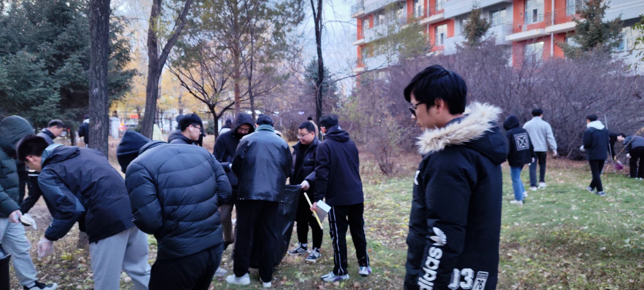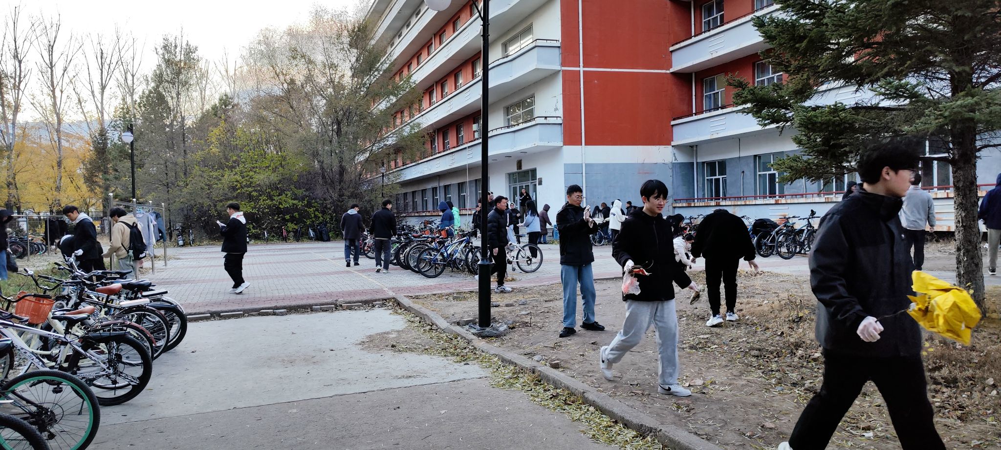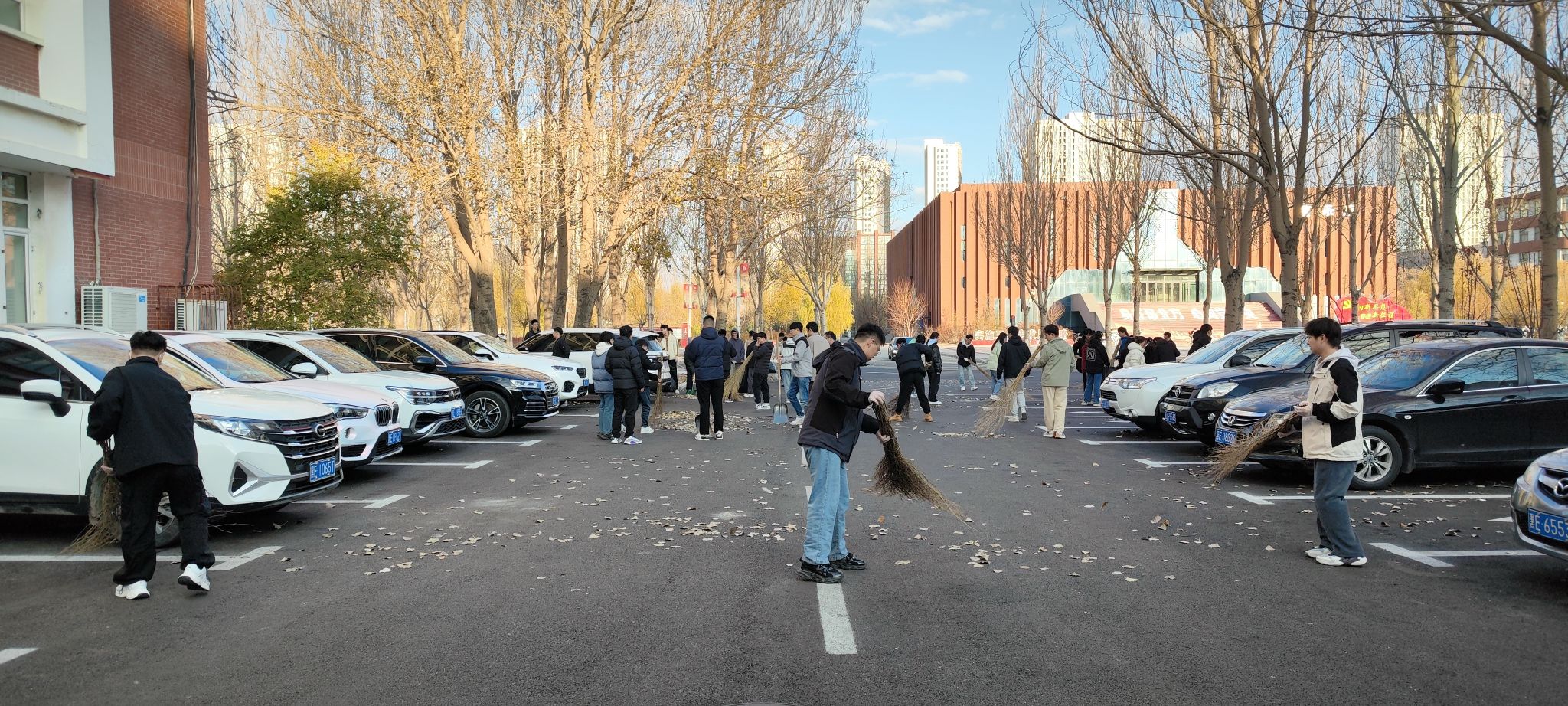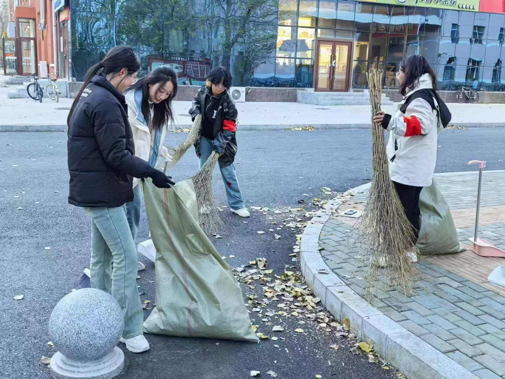 11月1日,学院组织学生分别在学院办公楼和公寓卫生分担区开展清扫活动。寒冷的深秋,学生们热情高涨,为学校志愿服务的心是火热的,大家分工明确,捡烟头、扫落叶、运垃圾、摆放自行车,经过大家共同努力,将分担区打扫的干干净净,为学校树立了良好形象。