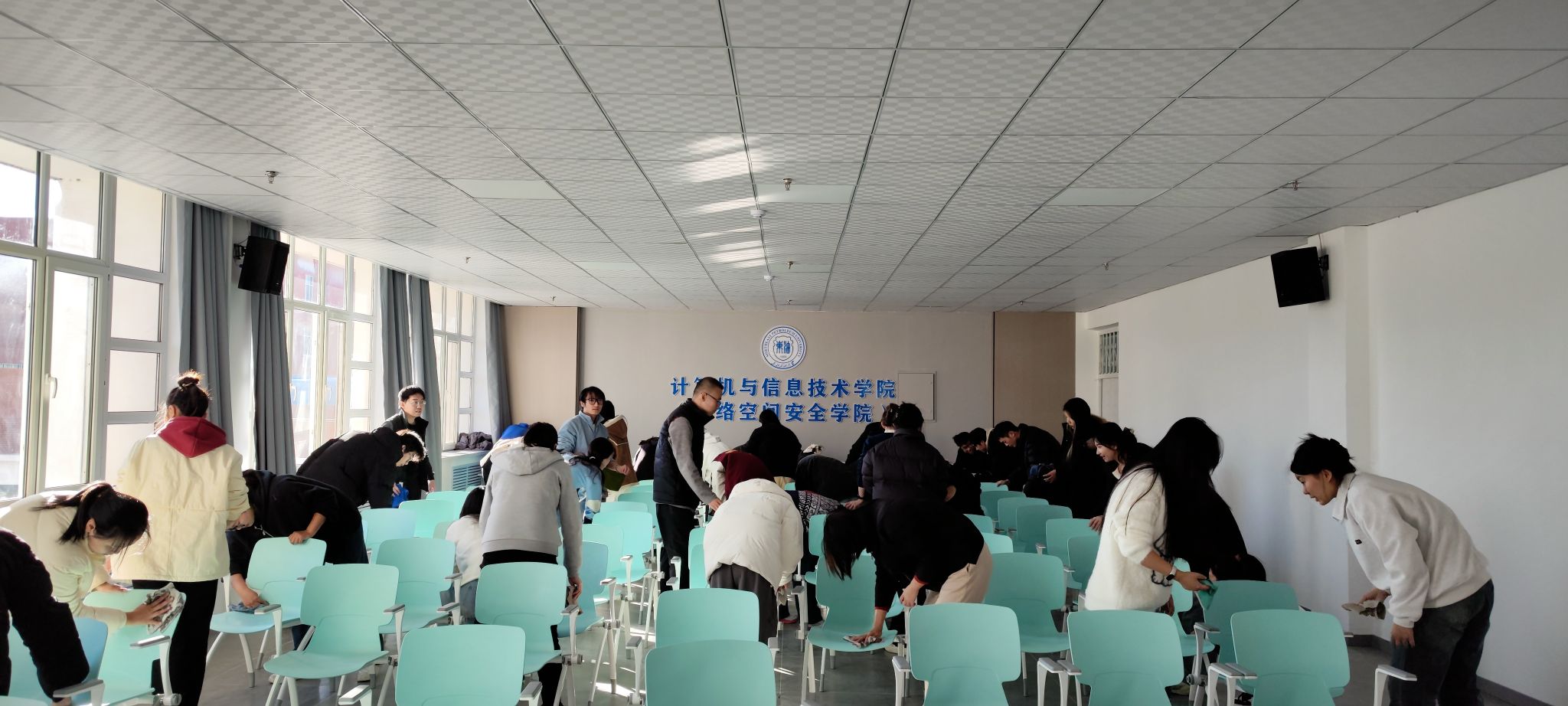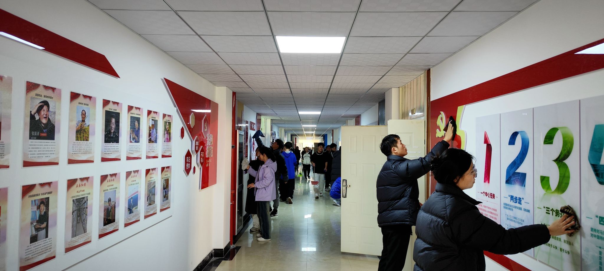 11月4日,研究生党小组对学院会议室、走廊公共区域进行了卫生清理。学生们挤出科研时间,自带清扫工具,分工合作,把学院会议室、文化宣传走廊等公共区域打扫的焕然一些。在场学生无不感叹学院崭新的变化,并由衷表达爱校爱院的情感。然后,又转战厚德公寓2号楼分担区清扫卫生,将公寓楼前后广场及草坪的垃圾、废弃物、积满的垃圾箱清扫干净,自行车摆放整齐,受到了厚德公寓管理员的好评。