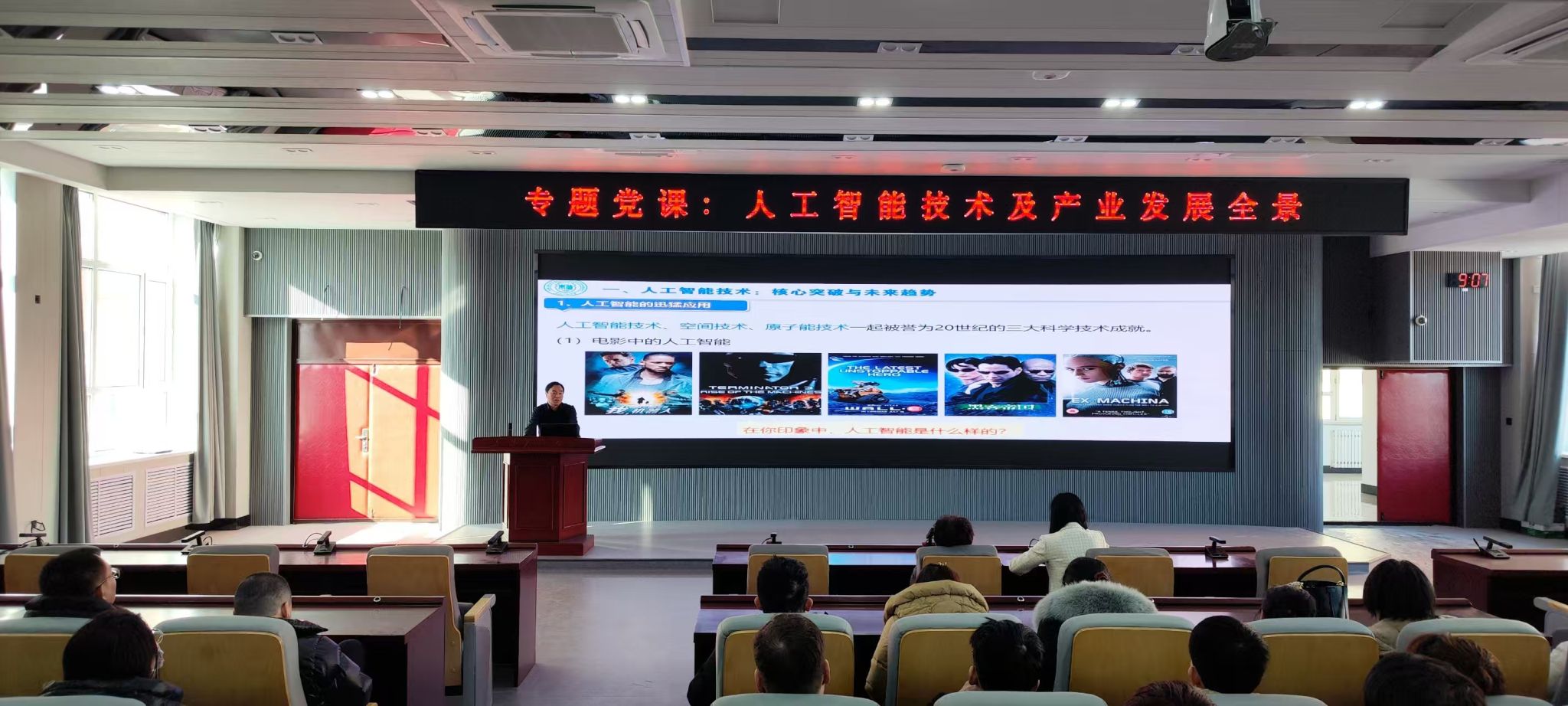 为扎实开展学院党建思政“一月一主题”教育活动,深化人工智能技术在教育领域的应用研究,提升44118太阳成城集团学生数字素养与技能,2025年2月28日,44118太阳成城集团院长田枫在第一教学楼211会议室组织为学院师生作“人工智能技术及产业发展全景”专题党课。党课由学院党委书记任艳秋主持。