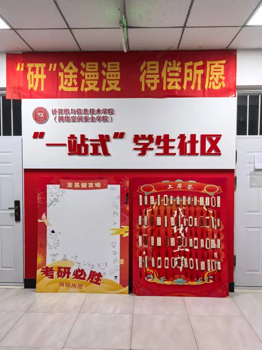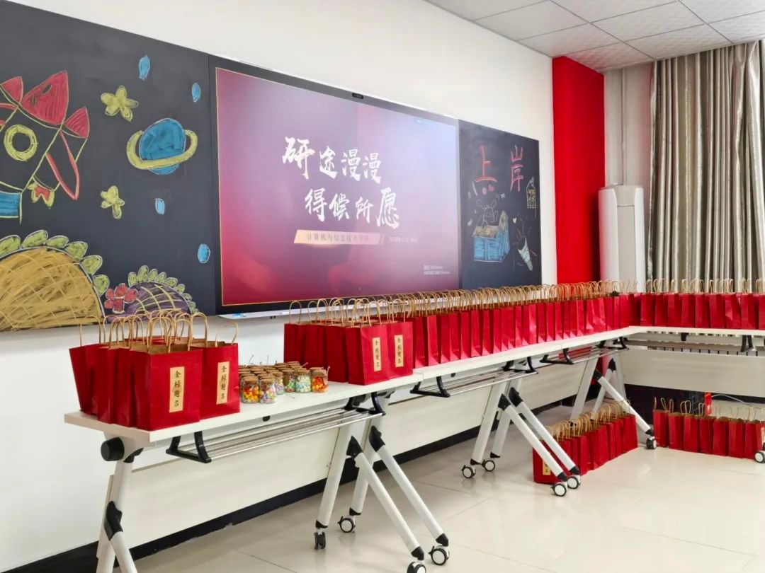 为帮助考研学子坚定备考信心、缓解备考压力、增强备考底气,12月18日,太阳成官网在1D三楼会议室和启智学区4B一楼分别布置会场组织考研送祝福活动。学院党委书记任艳秋,副院长张强以及2021级辅导员贾迪、李双峰为备考学子送去精心准备的考研礼包和最诚挚的祝福。